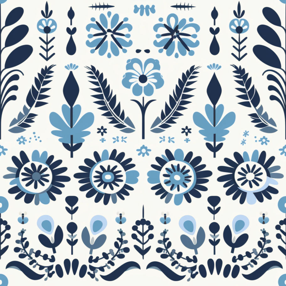 The heart of this series lies in its stylized depictions of flowers and foliage. Inspired by the rich visual language of folk art, the artworks feature simplified yet intricate botanical forms rendered in a palette that often emphasizes blues, whites, and touches of complementary colors. Expect to see symmetrical arrangements, decorative borders, and a playful use of pattern, all contributing to a sense of visual rhythm and handcrafted detail. While rooted in tradition, the execution maintains a clean and contemporary aesthetic, ensuring these pieces feel both familiar and refreshingly new. There's a clear appreciation for the beauty of natural forms, interpreted through an artistic lens that values both detail and overall decorative impact.